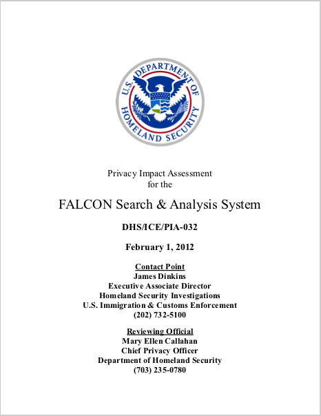 Department of Homeland Security, Privacy Impact Assessment for the FALCON Search & Analysis System, 1 February 2012.
